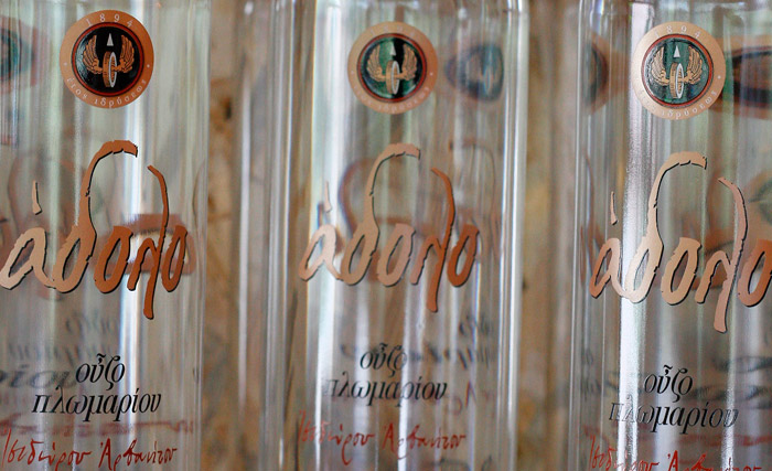 Είναι το προϊόν της τρίτης απόσταξης- τα καλά ούζα αποστάζονται σήμερα δύο φορές- της καρδιάς του αποστάγματος του αδελφού του «Ούζου Πλωμαρίου Ισιδώρου Αρβανίτη». Μόνο που αυτή η τρίτη απόσταξη γίνεται μ’έναν πολύ ξεχωριστό τρόπο χρησιμοποιώντας τον παλιό, σφυρηλατημένο στο χέρι, χάλκινο άμβυκα που είχε κατασκευαστεί το 1911 στη Σμύρνη, τότε που η Λέσβος ήταν ακόμη κομμάτι της οθωμανικής αυτοκρατορίας. Είναι πολύ μικρός – περίπου 250 λίτρα – χτισμένος σε πυρότουβλα της ίδιας εποχής και την ενέργεια της απόσταξης την δίνει όπως παλιά φωτιά από ξύλα ελιάς, που προσφέρουν κι αυτά με τον καπνό τους το κατιτί τους στο άρωμα του «Άδολου». Χρειάζεται μεγάλη εμπειρία και συνεχής επίβλεψη της φωτιάς ώστε να διατηρείται σταθερή η θερμοκρασία κατά τη διάρκεια της απόσταξης. Αλλά πριν να ξεκινήσει, το καπάκι του άμβυκα σφραγίζεται με το σώμα του χρησιμοποιώντας όπως παλιά ζυμάρι. Μετά από 13 ώρες αργής επεξεργασίας, κυλάει η άδολη καρδιά της τρίτης απόσταξης, η καρδιά της καρδιάς του αποστάγματος που οριοθετείται ακόμη πιο αυστηρά για να προκύψει το αληθινά premium ούζο 42 βαθμών που γράφει «Άδολο» πάνω στη φιάλη.